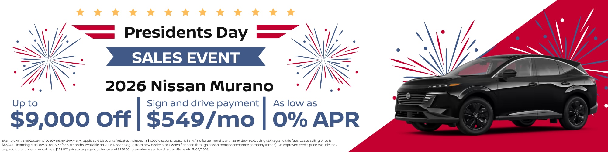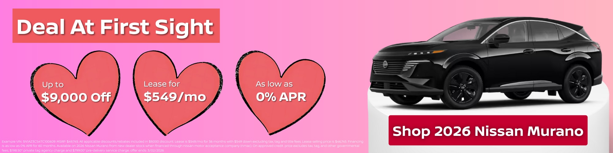 The Nissan Murano offers a remarkable exterior design accompanied by a tremendously comfy and roomy interior. The moment you see this car, you'll want to drive it off the lot immediately. Our team is here to help you with any questions about pricing, options, financing and lease incentives, give us a call today or simply click Shop Now.